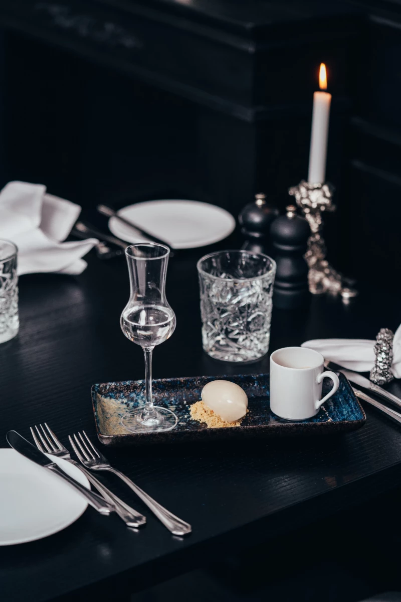 Begleitet wird das Menü von einer sorgfältig ausgewählten Weinbegleitung, die jeden Gang harmonisch unterstreicht, ohne sich in den Vordergrund zu drängen. Die Auswahl erfolgt so, dass sie die Essenz des Menüs unterstützt und ein stimmiges Gesamtbild schafft.